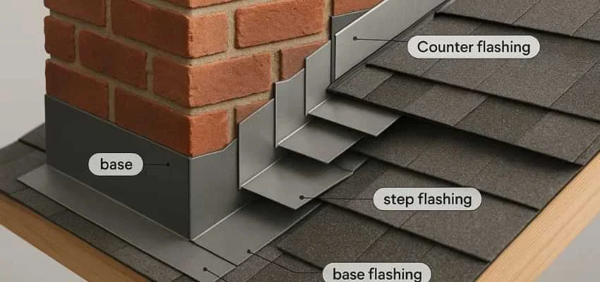 Step flashing tucks under each shingle course along the chimney sides. Counterflashing locks into mortar joints and overlaps those steps. In Clements Ranch, Forney the overlap must be precise to block wind-driven rain. We avoid shortcuts like exposed face-nailing that can loosen and leak later.